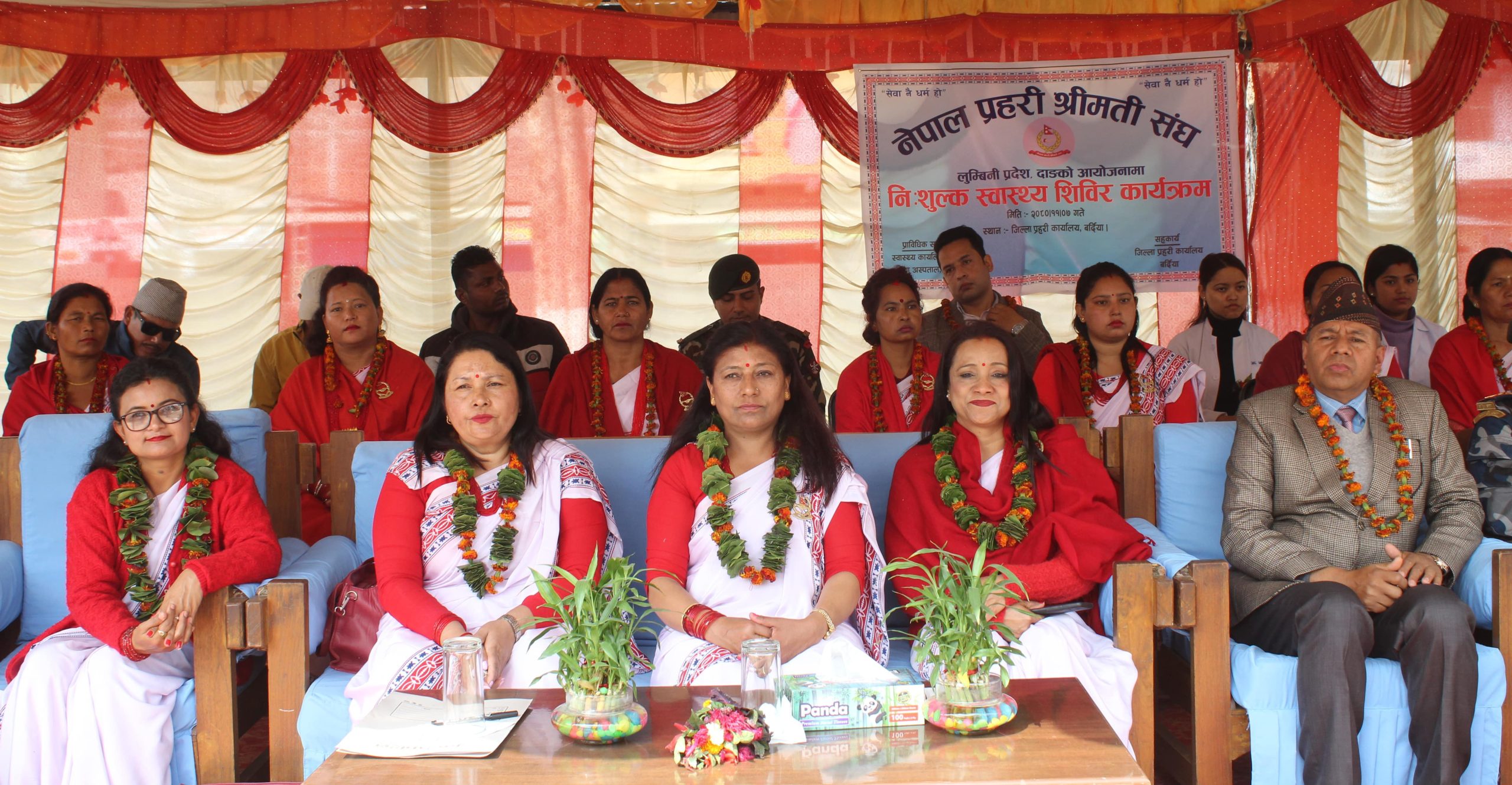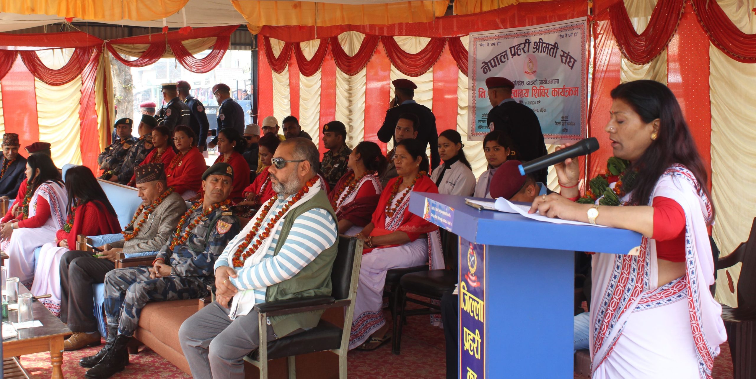 नेपाल प्रहरी श्रीमती संघ भृकुटीमण्डप काठमाण्डौकी अध्यक्ष श्रीमती लक्ष्मी कुँवरको प्रमुख आतिथ्यता र लुम्बिनी प्रदेश प्रहरी कार्यालय दाङका प्रहरी नायब महानिरीक्षक कुबेर कडायत तथा नेपाल प्रहरी श्रीमती संघ लुम्बिनी प्रदेशकी अध्यक्ष श्रीमती निलम कडायत लगायत अन्य विशिष्ट अतिथिहरुको सहभागितामा नि:शुल्क स्वास्थ्य शिविर कार्यक्रम सन्चालन गरिएको थियोे ।