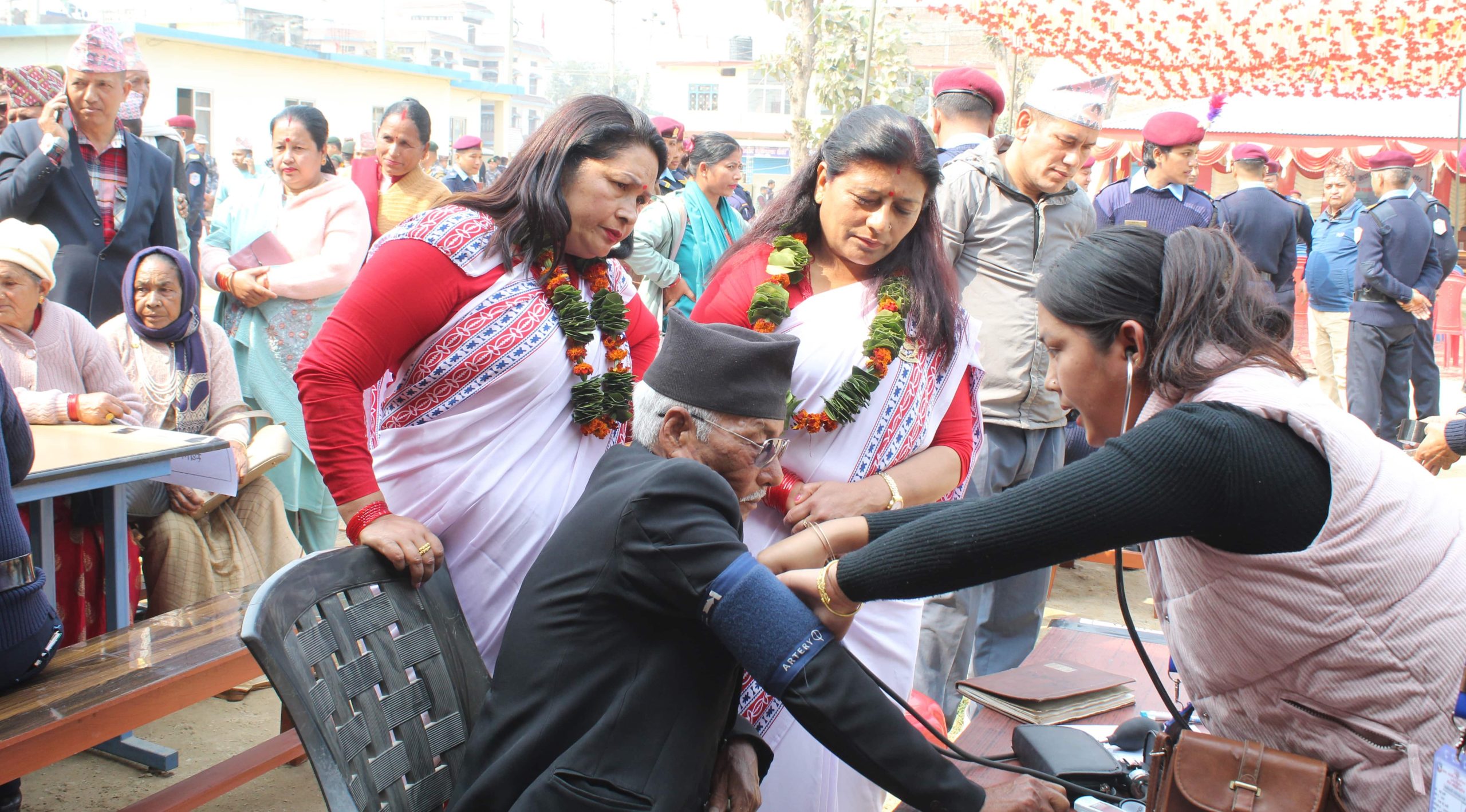 बर्दिया । नेपाल प्रहरी श्रीमती संघ, लुम्बिनी प्रदेश दाङको आयोजनामा आज नि:शुल्क स्वास्थ्य शिविर सन्चालन गरिएको छ । जिल्ला प्रहरी कार्यालय बर्दियाको सहकार्यमा र स्वास्थ्य कार्यालय बर्दिया तथा बर्दिया अस्पताल गुलरियाको प्राविधिक सहयोगमा सोमबार जिल्ला प्रहरी कार्यालय बर्दिया परिसरमा प्रहरी कर्मचारी, प्रहरी परिवार र पुर्व प्रहरी कर्मचारीहरुको लागि नि:शुल्क स्वास्थ्य शिविर सन्चालन गरिएको हो ।
