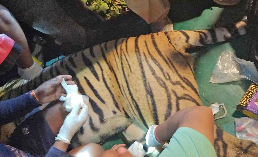 चितवनको नारायणगढ बजार नजिकै शनिबार विहान एक ब्यक्तिलाई आक्रमण गरी घाइते बनाउने बाघलाई १७ घण्टापछि डार्ट गरेर नियन्त्रणमा लिइएको छ ।