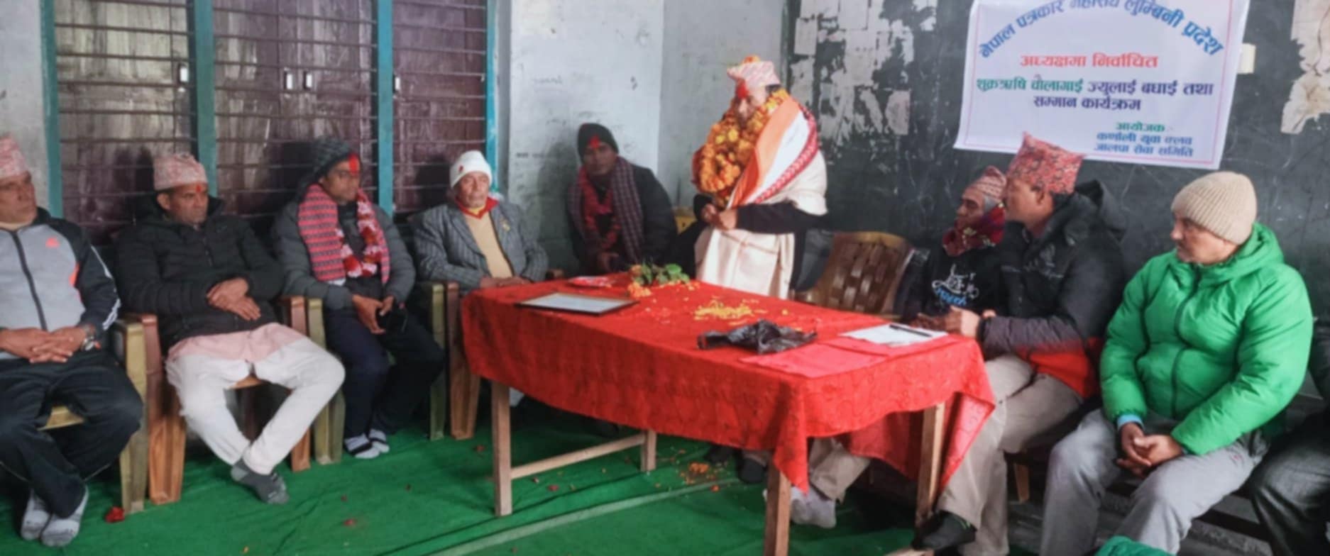 नेपालगन्ज । नेपाल पत्रकार महासंघ लुम्बिनी प्रदेश अध्यक्ष शुक्रऋषि चौलागाईलाई आज राजापुरमा सम्मान गरिएको छ । नेपाल पत्रकार महासंघको मंसिर २८ गते सम्पन्न निर्वाचनमा लुम्बिनी प्रदेश कार्यसमितिको अध्यक्षमा निर्वाचित अध्यक्ष चौलागाईंलाई राजापुर -८आफ्नै गाउँ(धोबिनपुर)मा बुधबार हार्दिक बधाई ज्ञापन गर्दै सफल कार्यकालको शुभकामना सहित सम्मान गरिएको हो ।