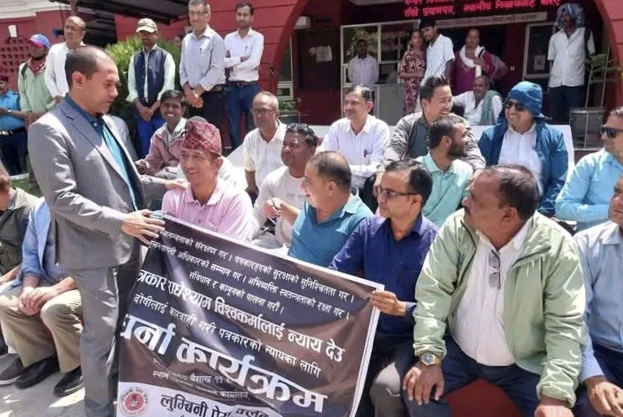 नेपालगन्ज । रुपन्देहीका पत्रकार राधेश्याम विश्वकर्मामाथि दुव्र्यवहार र आक्रमण प्रयास गर्ने दिपेश यादवलाई पक्राउ गरि कानुनी कारवाहीको माग गर्दै आन्दोलन सुरु गरिएको छ । नेपाल पत्रकार महासंघ रुपन्देही र लुम्बिनी प्रेस क्लवको अगुवाइमा आन्दोलन सुरु गरिएको हो ।