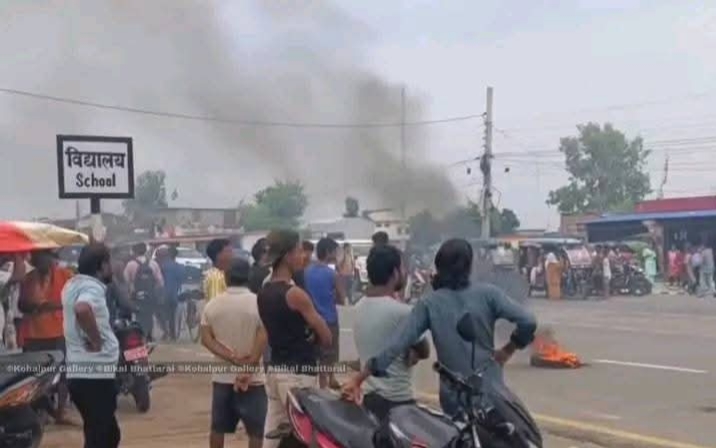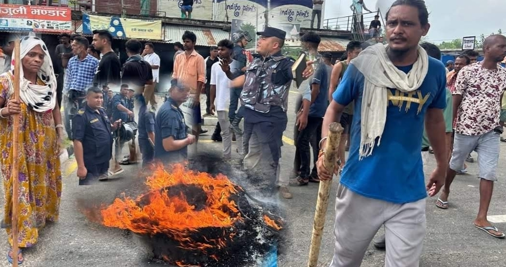 नेपालगन्ज । बाँकेको जानकी गाउँपालिकाको वडा नम्बर ४ स्थित नहर चोकमा स्थानीयले टायर बालेर सडक अवरुद्ध गरेका छन ।  नेपालगञ्ज–खजुरा सडकखण्ड अन्तर्गत खजुरा खुर्दमा शनिबार राती मोटरसाइकलको ठक्करबाट ६ वर्षीय बालकको ज्यान गएपछि सडक अवरुद्ध गरेका हुन ।गएराती मोटरसाइकलले ६ वर्षीय बालकलाई ठक्कर दिंदा उपचारको क्रममा उनको मृत्यु भएको स्थानीयले जानकारी दिए । तीब्र गतिमा आएको मोटरसाइकल बालकलाई ठक्कर दिएर फरार भएपछि मृतकका आफन्तजन र स्थानीयवासीहरूले आक्रोशित भएका छन ।