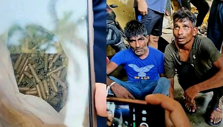 नेपालगन्ज । एक बोरा गाेलीका खाेका सहित दुई जना समातिएका छन । नेपालगन्ज वडा नम्बर ३ स्थित गत राति बिद्युत पाेलकाे बत्ती फाेड्न लाग्दा स्थानीयले उनीहरुलाई समातिएका हुन । अन्य दुई जना फरार छन ।