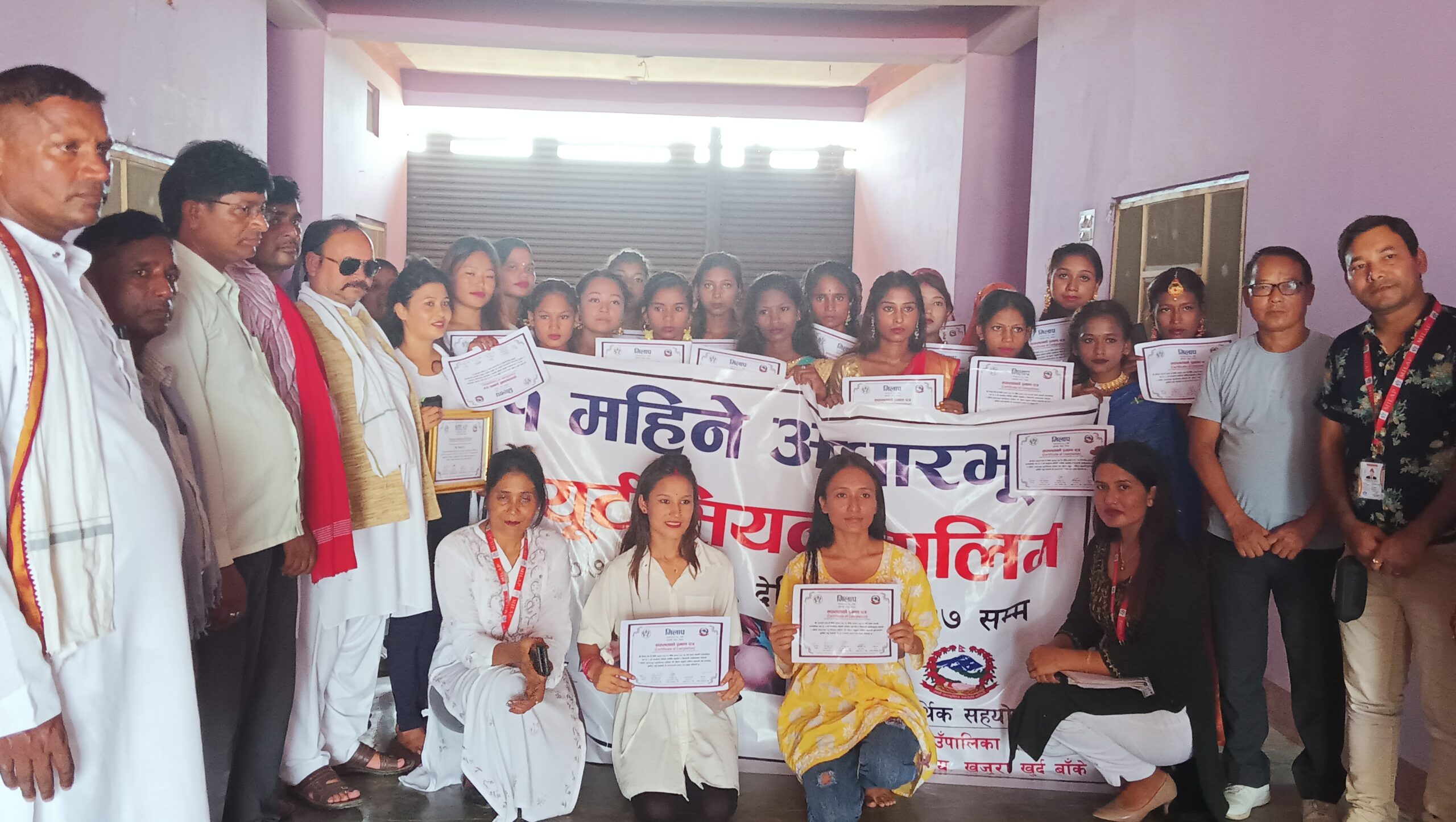 खजुराखुर्द / बाँकेको जानकी गाउँपालिका वडा नम्बर ४ मा एक महिने आधारभूत ब्यूटिशियन तालिम सम्पन्न भएको छ ।