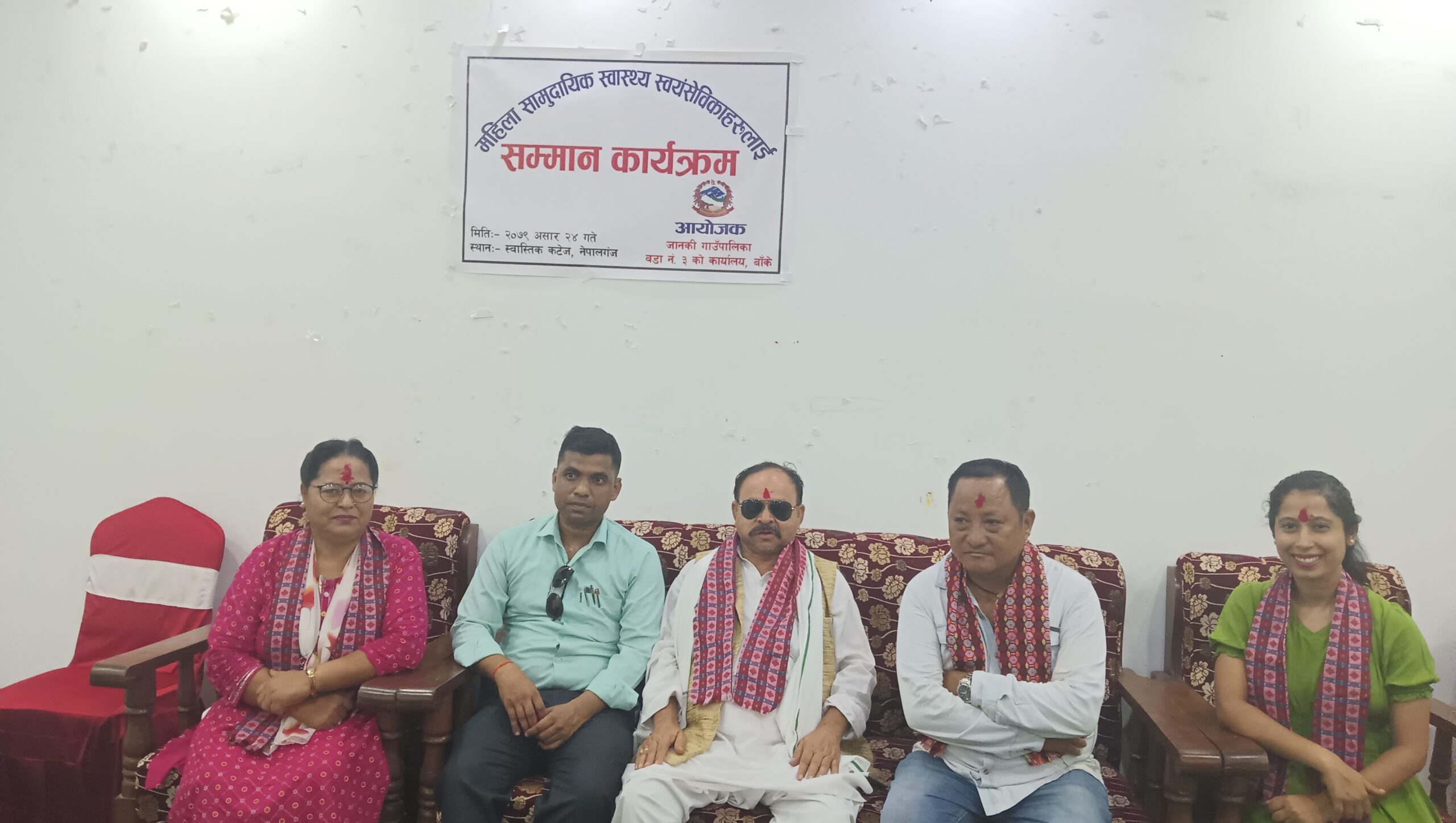सम्मान कार्यक्रममा प्रमुख अतिथी जानकी गापा. अध्यक्ष छब्बन खाँ, विशिस्ट अतिथीमा जानकी गापा. स्वास्थ्य प्रमुख दल बहादुर राना, अतिथीमा जानकी गापा. स्वास्थ्य निरीक्षक गंगा मरासिनीले आसन ग्रहण गरेका थिए ।