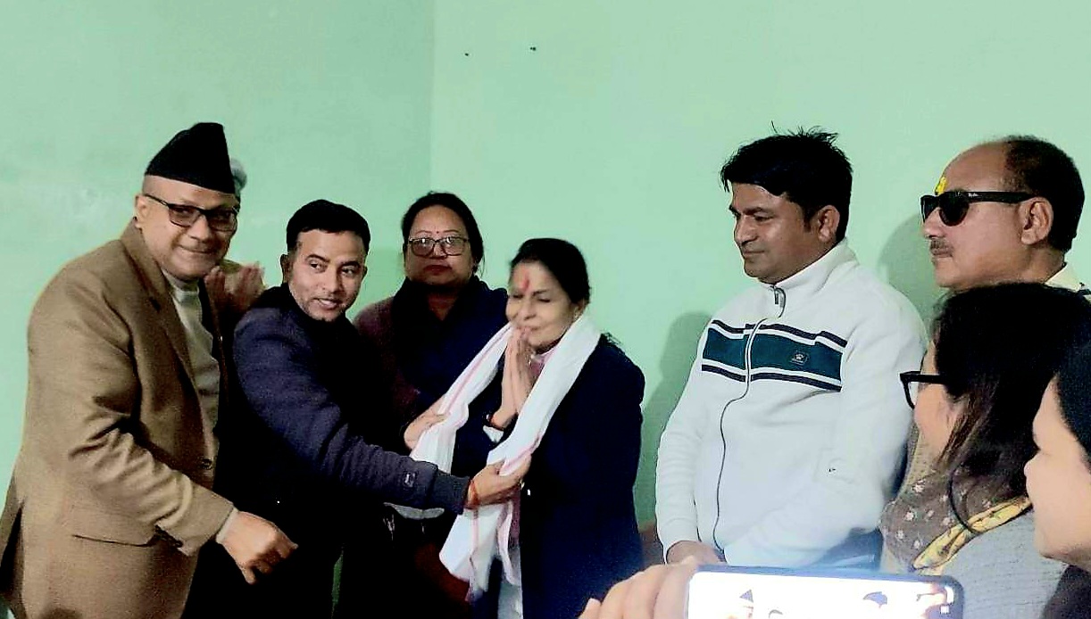 नेपालगञ्ज / संवाद समूह बाँकेका सदस्यद्वय सांसद लक्ष्मी तिवारी र रत्न खत्रीलाई आज संवाद समूह बाँकेले स्वागत तथा सम्मान गरेको छ । खत्री बाँके क्षेत्र न ३ बाट प्रदेश सांसद र तिवारी बाँके क्षेत्र न २ बाट (समानुपातिक) संघीय सांसद निर्वाचित भएपछि पहिलो पटक समूहले सदस्यद्वयलाई आफनो कार्यालयमा शुक्रबार एक समारोहबीच गम्छा र अविरसहित सम्मान गरेको हो ।