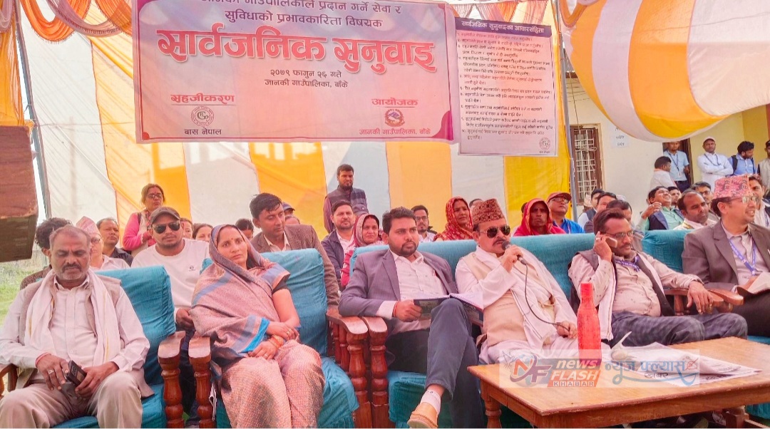 नेपालगन्ज / विभिन्न ७ बुदें साझा सार्वजनिक प्रतिबद्धताको घोषणा गर्दै जानकी गाँउपालिकाले प्रदान गर्ने सेवा तथा सुविधाको प्रभावकारिता बिषयक सार्वजनिक सुनुवाई आज सम्पन्न भएको छ । जानकी गाँउपालिका बाँकेको आयोजना तथा बास नेपालको सहजिकरणमा शुक्रबार भएको सार्वजनिक सुनुवाई विभिन्न ७ बुदें साझा प्रतिबद्धताका साथ सम्पन्न भएको हो