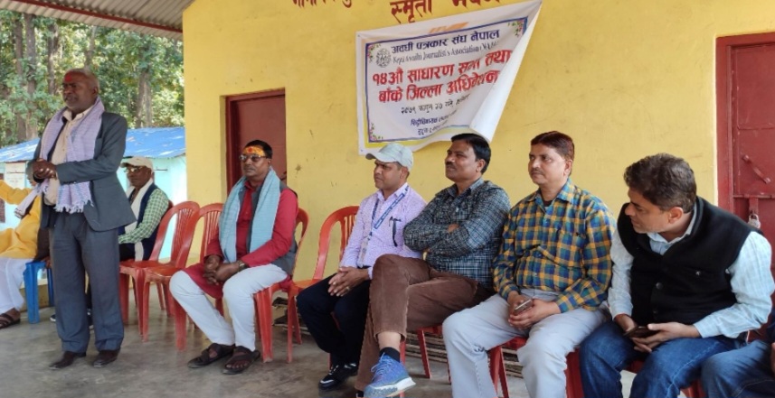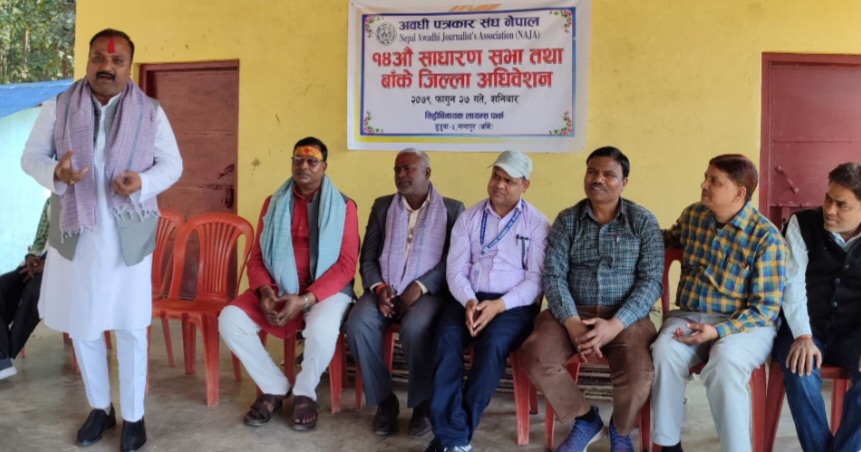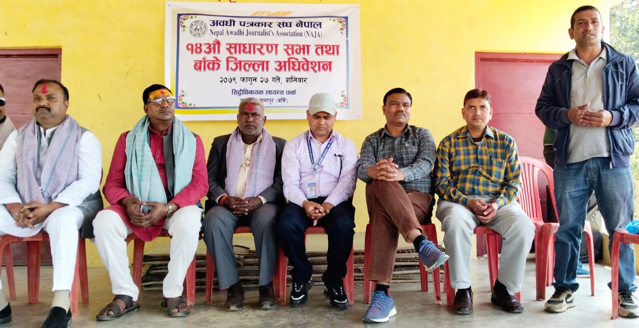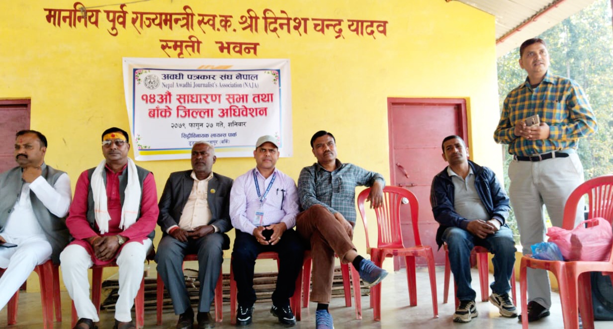 बाँके / अवधी पत्रकार संघ नेपाल बाँकेको १४ औं साधारण सभा तथा जिल्ला अधिबेशन आज सम्पन्न भएको छ । बाँकेको डुडुवा गाउँपालिका – ५ स्थित सिद्धिविनायक पार्कमा शनिवार दिन आयोजित सभाको उद्घाटन गर्दै लुम्विनी प्रदेशका कृषि तथा भूमि व्यवस्था मन्त्री भण्डारीलाल यादवले अवध क्षेत्रको रुपमा रहेको लुम्विनी सरकारले अवधी भाषा, कला, संस्कृतिको संरक्षण तथा सम्वद्र्धनमा विशेष पहल गर्ने बताउनुभयो । उहाँले अवध क्षेत्रको विकास त्यसमा पनि अवधी भाषी पत्रकारहरुको विकास, क्षमता अभिबृद्धि, महिला पत्रकारको सहभागिता र संघको संस्थागत विकासका लागि आवश्यक पहल गर्ने प्रतिबद्धता गर्दै स्थानीयस्तरमा रहेका पर्यटकिय स्थलहरुको पहिचान र संम्बद्र्धनमा प्रदेश सरकारले पहल गर्ने बताउनुभयो ।