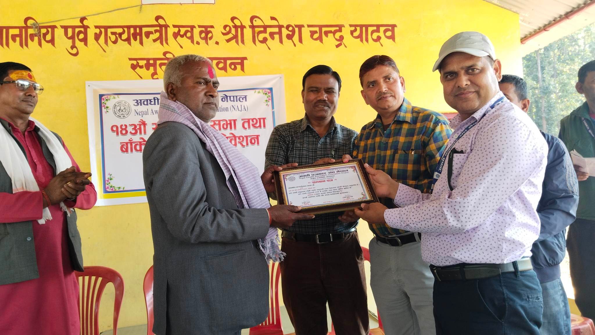 सभामा लुम्विनी प्रदेशका कृषि तथा भुमि व्यवस्था मन्त्री भण्डारीलाल यादव र सांसद आदेश अग्रवाललाई सम्मान गरिएको थियो । त्यस अवसरमा अवधी पत्रकार संघ बाँकेका पुर्व जिल्ला अध्यक्षद्धय चन्दे्रश्वरराज त्रिपाठी र नन्दलाल साहुलाई सम्मान गरिएको थियो । सभामा संघका जग्गादाता माधवराम बर्मालाई पनि सम्मान गरिएको थियो ।
