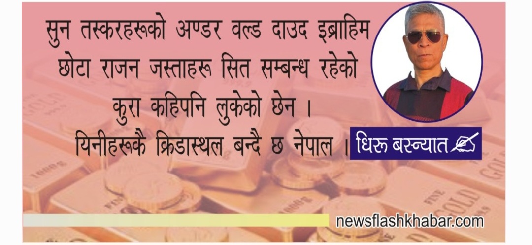 सुन तस्करहरुको अण्डर वल्ड दाउद इब्राहिम, छोटा राजन जस्ताहरु सित सम्बन्ध रहेको कुरा कहिपनि लुकेको छैन ।यिनीहरूकै क्रिडास्थल बन्दै छ नेपाल ।