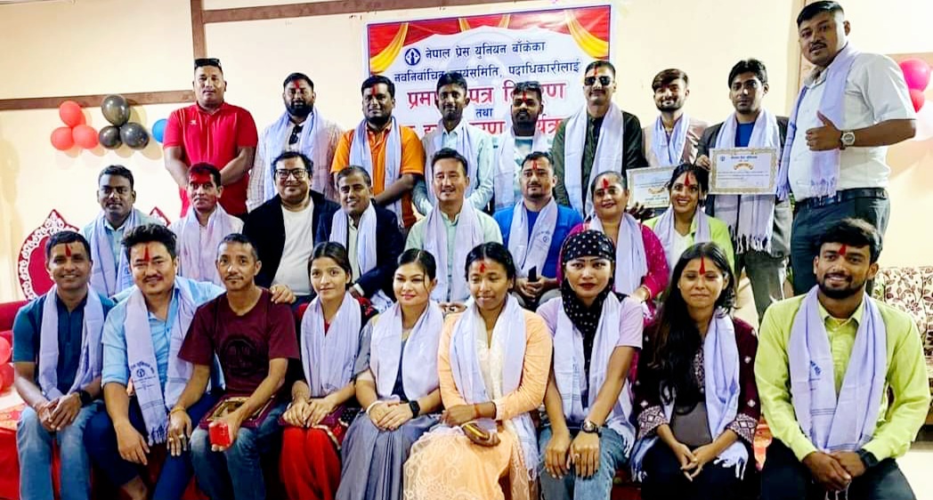 नेपालगन्ज / नेपाल प्रेस युनियन बाँकेको नवनिर्वाचित कार्यसमितिले पदभार ग्रहण गरेको छ । प्रेस युनियन बाँकेको गत साउन २७ गते भएको १२ औं जिल्ला अधिवेशनबाट निर्वाचित प्रियास्मृती ढकाल नेतृत्वकाे कार्यसमितिले बिहीबार पदभार ग्रहण गरेको हो ।