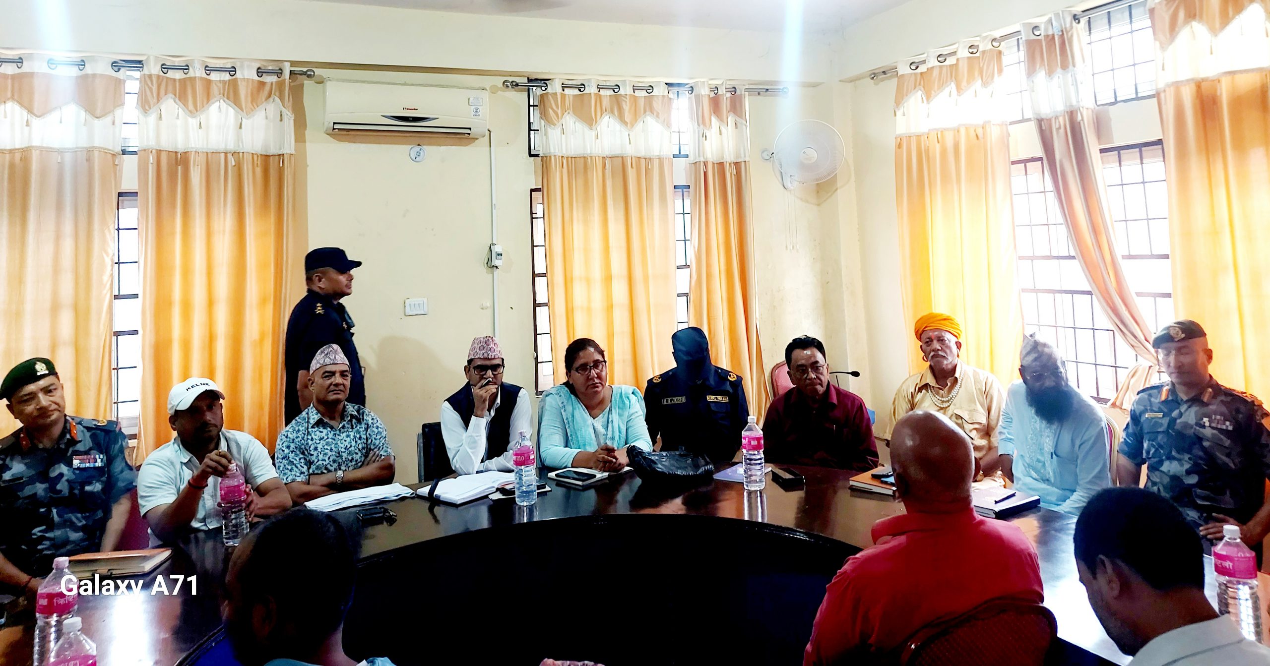 बाँकेका प्रमुख जिल्ला अधिकारी विपिन्न आचार्यको नेतृत्वमा बसेको बैठकमा बाँके क्षेत्र नम्बर २ का प्रतिनिधिसभा सदस्य डा. धवलसम्शेर राणा, प्रदेशसभा सभा सदस्य कृष्णा केसी नमुना, पूर्वमन्त्री मोहम्मद इस्तियाक राई, नेपाल प्रहरीका प्रदेश प्रमुख डीआईजी उमेशराज जोशी, बाँके स्थित राजनीतिकदलका नेता, धार्मिक संघ संस्थाका अगुवाहरुको उपस्थिती रहेको छ । धार्मिक विवाद बढ्दै गएपछि मंगलबार दिउँसो १ बजेबाट नेपालगन्जमा जारी गरिएको कर्फ्यु आदेश कायम रहेको छ ।