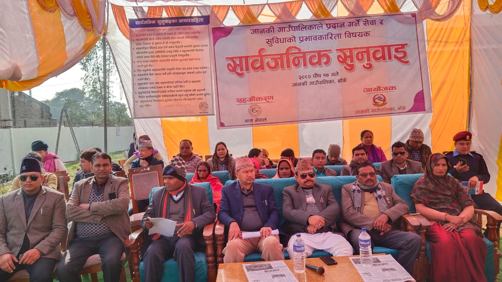 नेपालगञ्ज / बाँकेको जानकी गाउँपालिकाको आर्थिक बर्ष २०८०/०८१ को पहिलो सार्वजनिक सुनुवाई कार्यक्रम सम्पन्न गरिएको छ । पालिकाले प्रदान गर्ने सेवा तथा सुविधाको प्रभावकारिता बिषयक सार्वजनिक सुनुवाईमा सरोकारवाला र सहभागिहरु बिचमा झण्डै अढाई घण्टा भएको दोहोरो प्रश्नोत्तर पश्चात ६ बुँदे प्रतिबद्धता घोषणा गरिएको हो ।