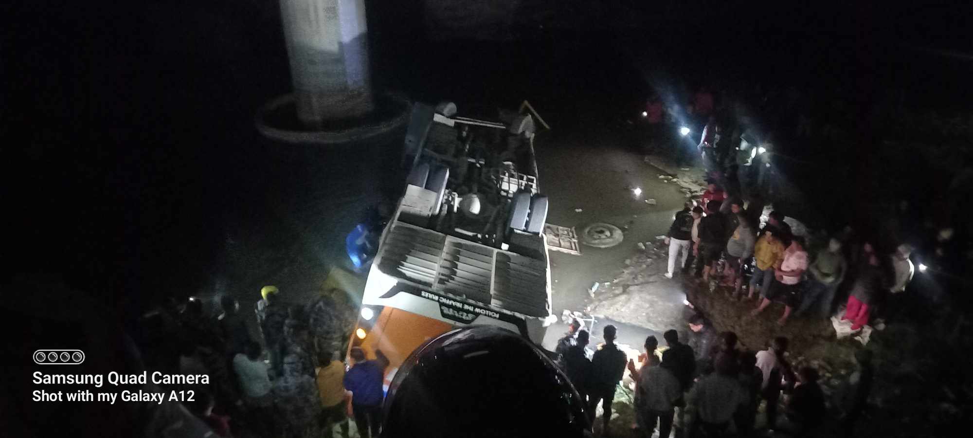 नेपालगन्ज / नेपालगन्जबाट काठमाडौं तर्फ जाँदै गरेको भे १ ख ३९१२ नम्बरको यात्रुबाहक बस राप्ती नदीमा खस्दा ५ जनाको घटनास्थलमै मृत्यु भएको प्रहरीले जनाएको छ । शुक्रबार राति करीब साढे १० बजेतिर दाङ देउखुरी – १, भालुवाङस्थित राप्ती नदीको पुलबाट रेलिङ भत्काउँदै बस तल नदीमा खसेको हो ।